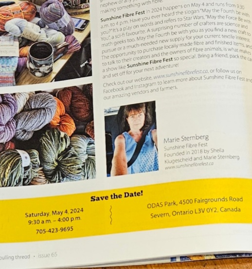 And check out issue 65 of A Needle Pulling Thread for an article about Sunshine Fibre Fest.