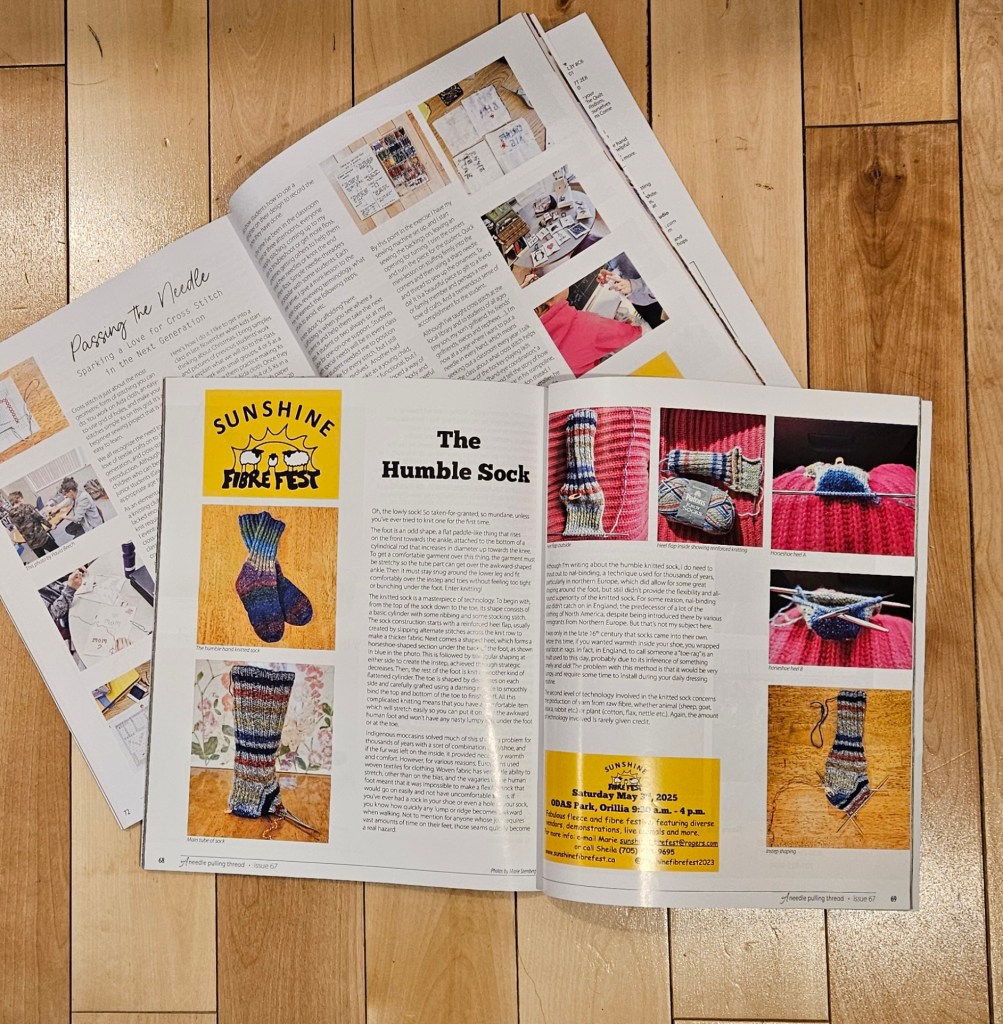 Marie’s written a couple of articles recently for A Needle Pulling Thread – check out Issue 67 The Humble Sock and Issue 68 Passing the Needle, all about teaching cross stitch to the next generation.
