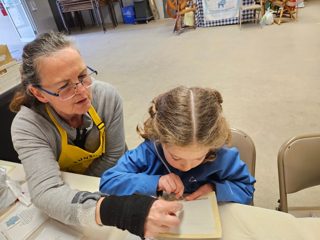 All ages are welcome! We love to see the next generation try their hand at a textile craft and we have lots to interest newcomers and experienced fibre lovers.